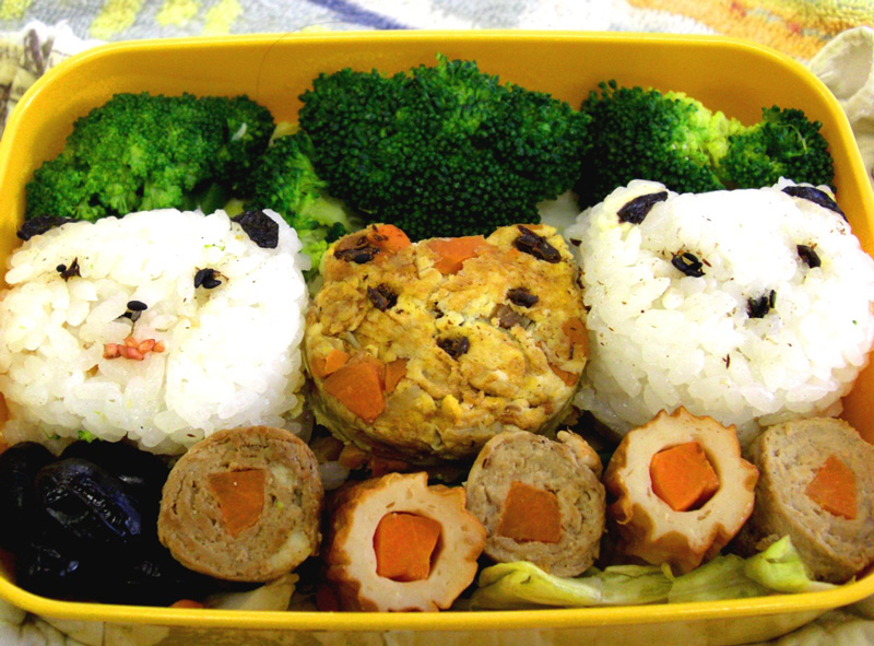 バレンタインデーは明日だが・・・ とおくをみている3匹オトコくまデコ弁