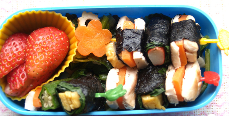 森のくまさん「おめざ」のおかず。串焼き風ヘルシーおかずです。