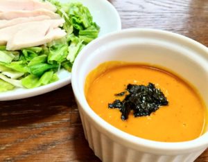 《材料》1キャベツ(短冊切り)100g-2鶏ハム1個-3焼のり全形/1/2枚