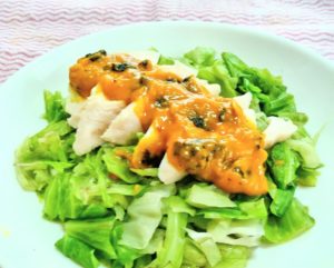 *キャベツ(短冊切り)150g-自家製鶏ハム1本