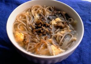 1、鍋に水500ccを測り火にかけ、沸騰したらそばを入れてゆでる。途中で玉ねぎを加える。