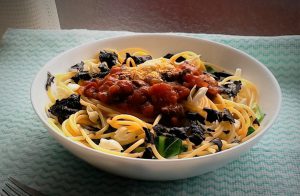 1パスタをゆでる、その鍋でパスタソースを温める。