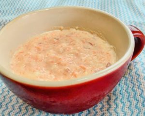 《材料》1りんご(皮つき)100g-2人参(皮つき)30g-3ヨーグルト(牛乳:豆乳半々)140g-4砂糖2g